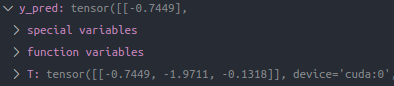 Linear_loss = [] for i in range(10): for data in linear_loader: x, y = data['x'], data['y'] x = x.cuda() y = y.cuda() y_pred = model(x) lloss = loss(y_pred, y) optimizer.zero_grad() lloss.backward() for param in model.parameters(): print(param.item()) optimizer.step() for param in model.parameters(): print(param.item()) Linear_loss.append(lloss.item()) print("Out--->input size:", x.size(), "output_size:", y_pred.size())