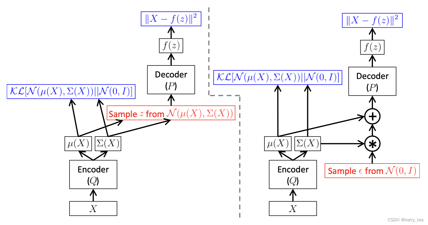 - 等号右边:可以通过梯度下降来优化,他更像是一个自编码器(AE),因为